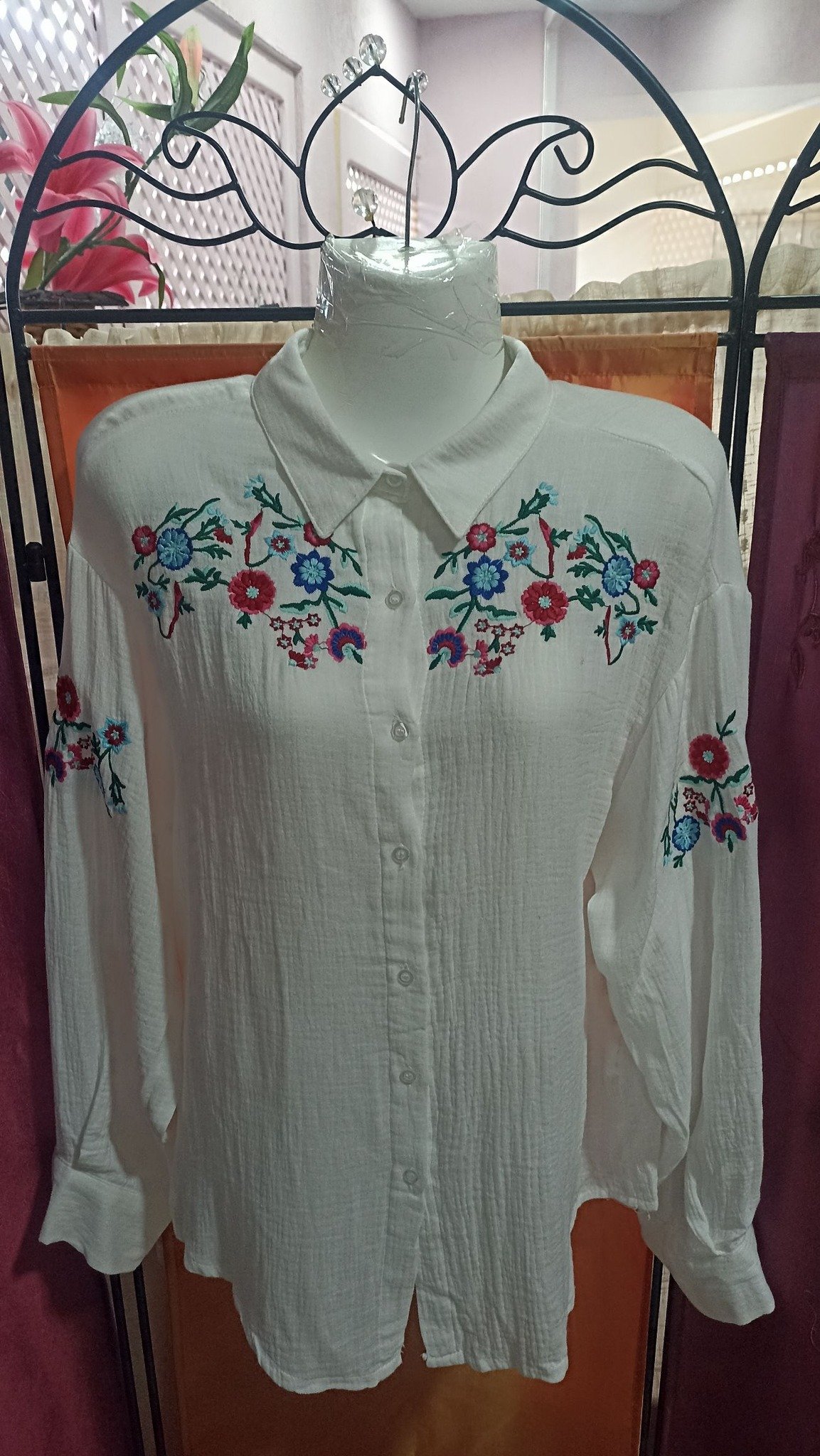Blusa ligera de gasa con estampado floral. Perfecta para primavera y verano.